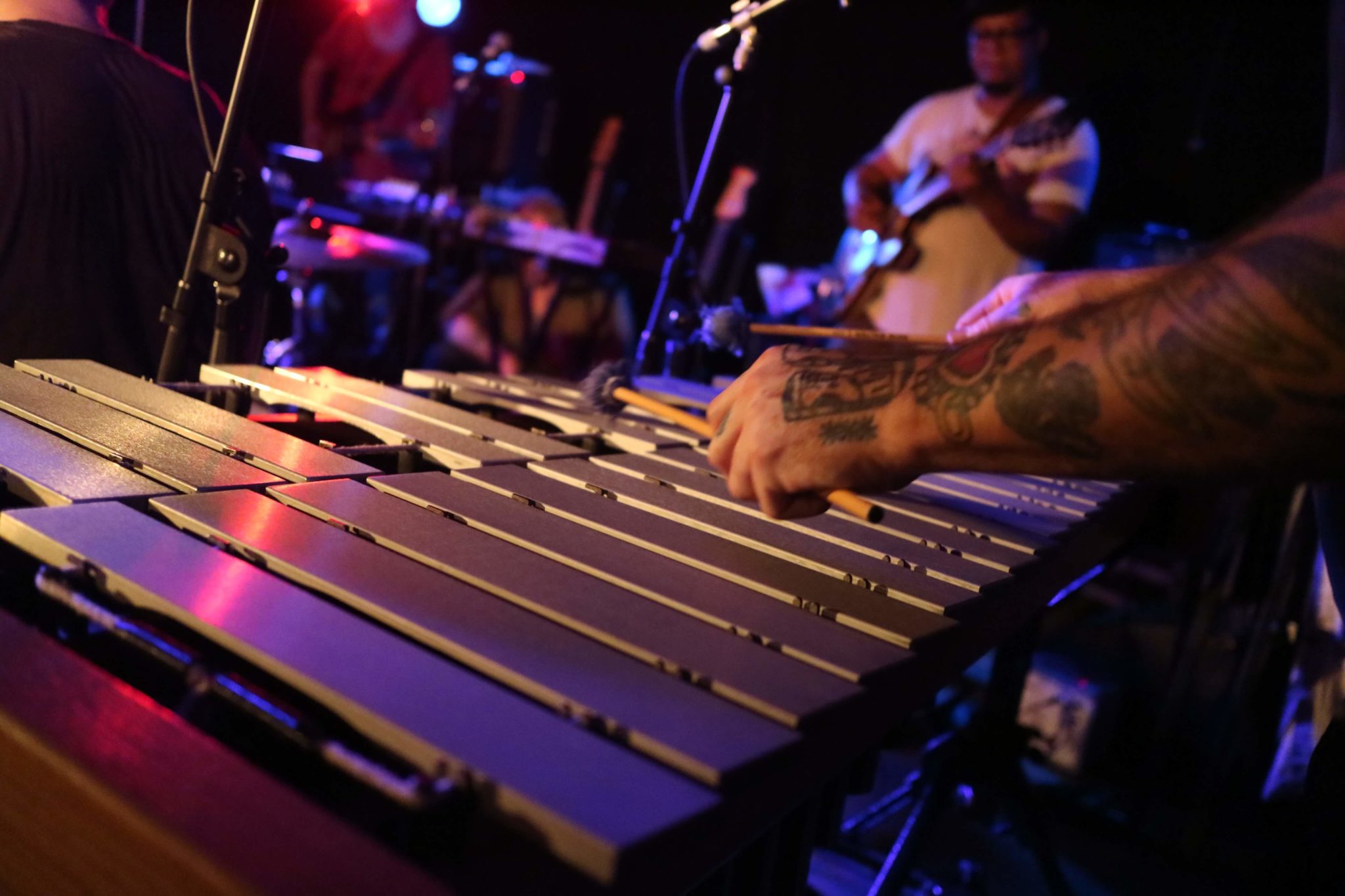 It was a marvel to watch interactions between band members. Two drummers would become one, with bass slotting in perfectly. Members would casually move around the stage, playing a game of musical chairs. I would watch how they split their time. Someone would adjust a dial and set the right effects, then add some colour using mallets on the vibes, then shake a tambourine or shakers, and finish off strumming on a guitar. And that’s all within one song!